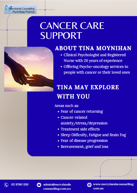 We are currently offering psycho-oncology therapy, provided by Clinical Psychologist and Registered Nurse, Tina Moynihan.